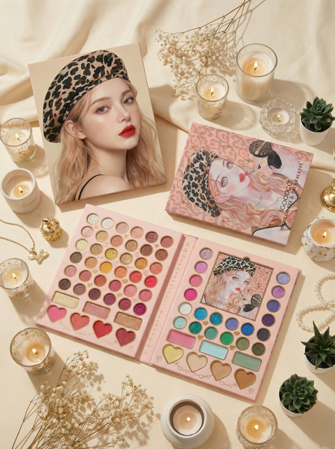 پالت 70 رنگ متنوع و جذاب شامل سایه های مات و شاین🫧💞 شامل رژگونه، هایلایتر،کانتور،کانسیلر 🦋😍 مناسب خاص پسندا🎄 دارای پک ۵ عددی براش و آینه🥂